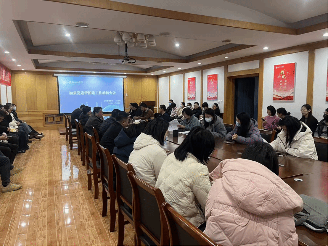 为提升基层团组织工作水平,激发团组织活力,优化党建带团建、团建促党建工作机制。学院于11月28日在经管楼209召开2025年度党建带团建动员会。学院全体党员参加会议,会议由学院党总支书记代立军主持。