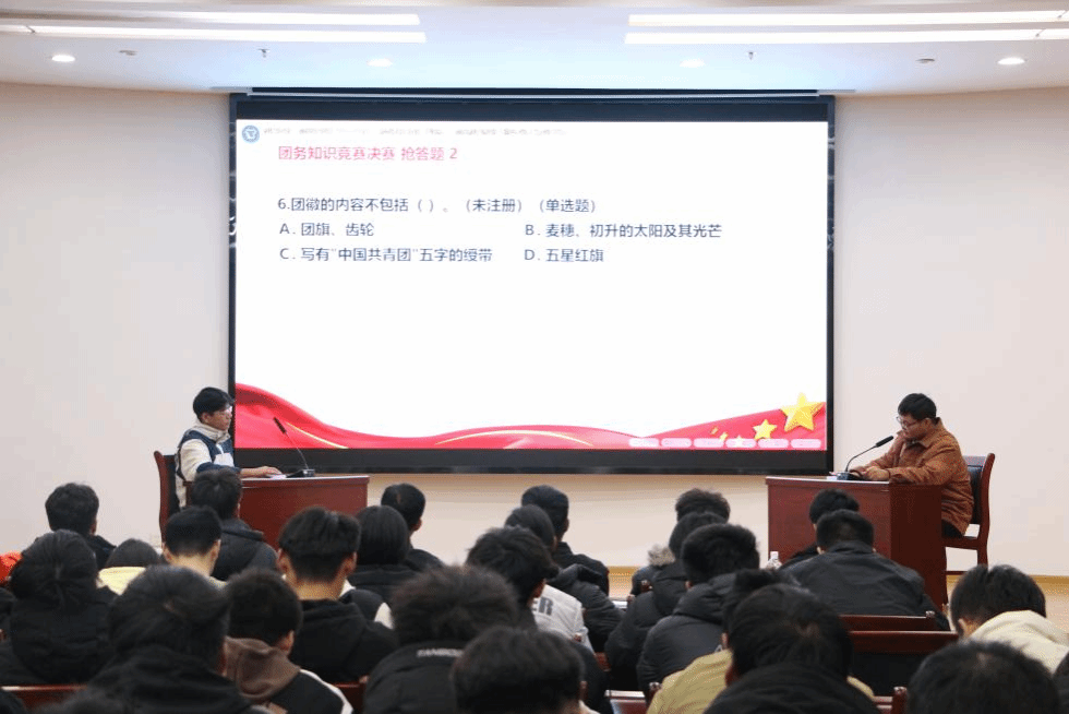 为了进一步加深团员青年对共青团的认识与理解,熟悉团组织的各项规章制度,筑牢理想信念根基,近日,学院团总支在图书馆学术报告厅举办了第二届“金秋团韵·知识盛典”团务知识竞赛决赛。辅导员高晓芝老师、范腾亚老师及学院主席团成员出席此次活动。