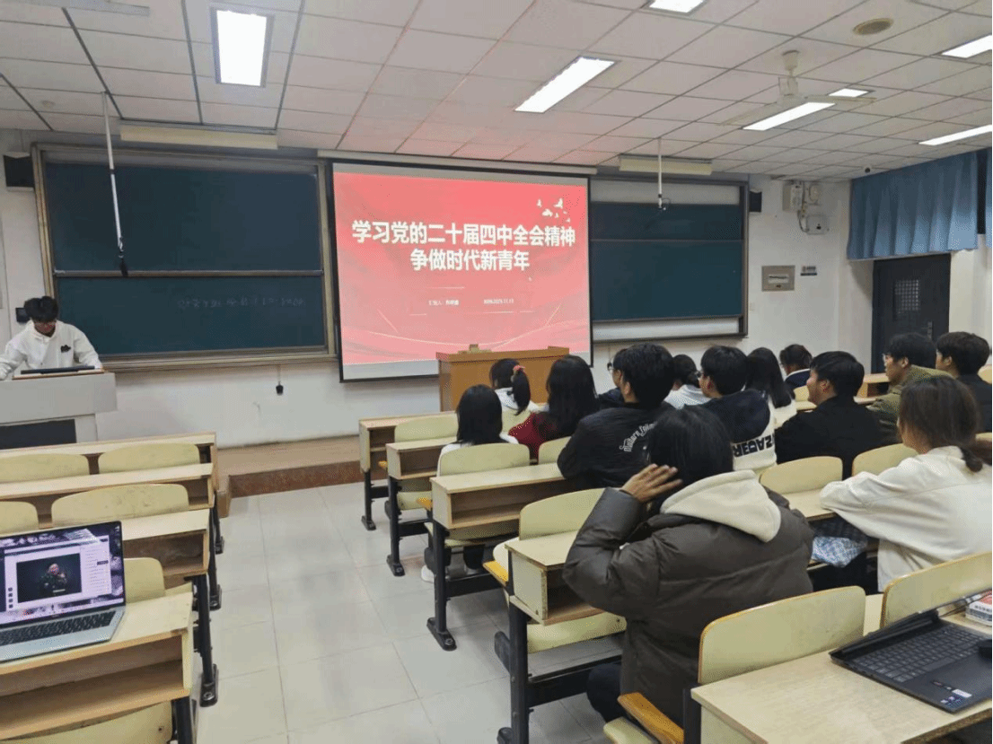 为深入学习贯彻党的二十届四中全会精神,引导广大青年学生准确把握全会核心要义与时代内涵,我院团总支近期组织开展专题宣讲活动。团总支书记李昕如面向全院团员青年,先后开展3场集中宣讲,累计覆盖学生400余人,推动全会精神在青年群体中入脑入心、落地生根。