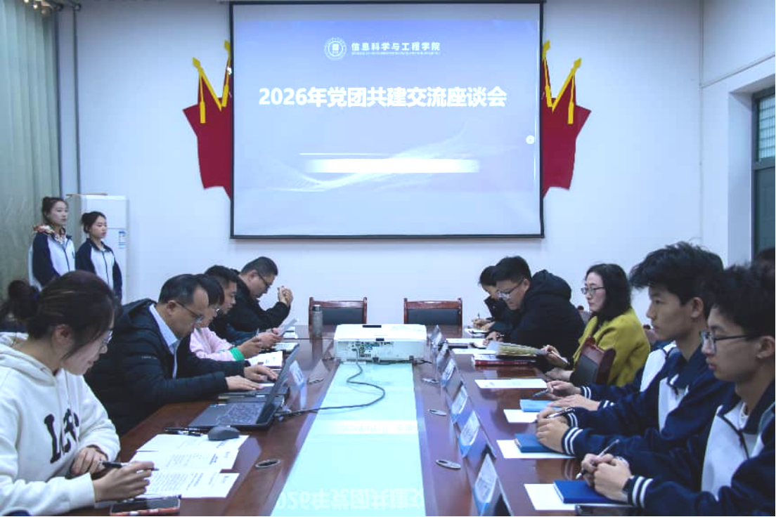 为持续深化党建带团建工作成效,充分发挥党员先锋模范作用,精准对接青年学子成长需求,信息科学与工程学院于4月1日在主楼702会议室成功举办2026年党团共建交流座谈会。学院党总支部副书记、副院长(主持工作)孙涛,党支部书记、优秀党员教师代表、各团支部代表及40余名优秀团员代表齐聚一堂,共话党团共建新路径,共绘青年成长新蓝图。活动由团总支书记王潇逸主持。