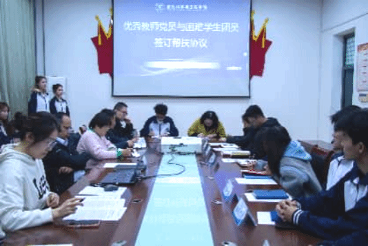 交流环节结束后,党支部代表与团支部代表、优秀教师党员代表与困难学生团员依次上台签订党支部与团支部结对共建协议、党员教师与困难学生团员的帮扶协议。