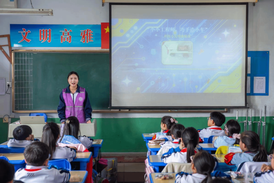 为激发小学生科学探究兴趣,引导孩子们在动手实践中感受科技乐趣,培养观察思考、动手操作与合作创新能力,让科学知识真正走进课堂、贴近生活,近日,信息学科与工程学院“智汇童心”志愿服务队走进小学课堂,一场别开生面的“小小工程师,巧手造小车”科学实践活动热闹开启。