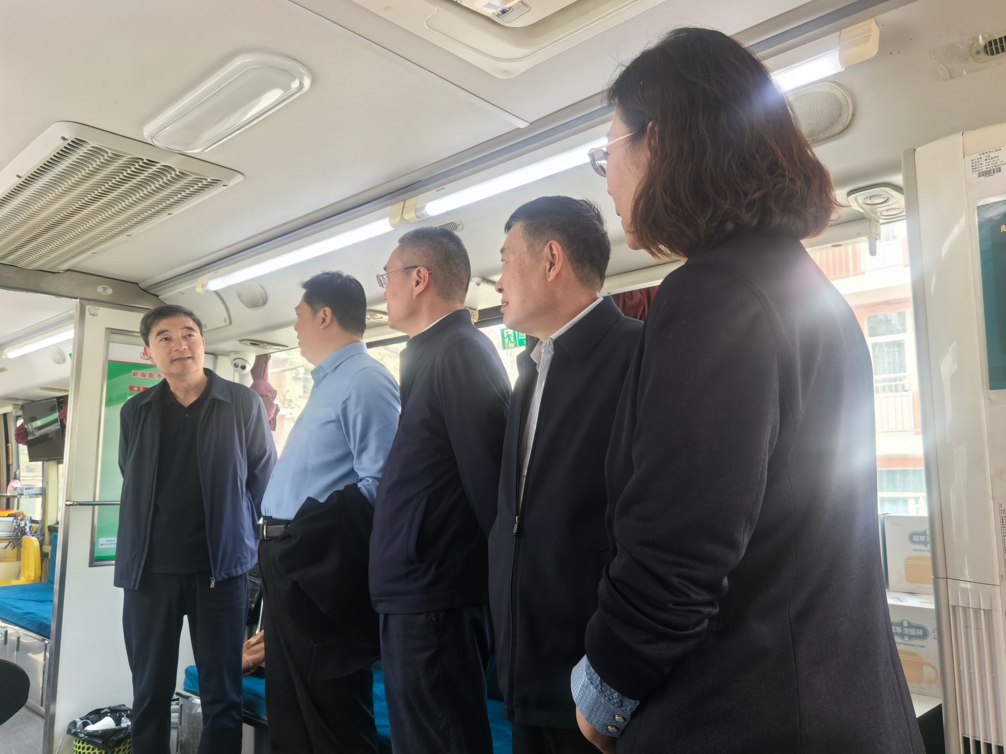 仪式结束后,出席活动的领导一行来到义诊和无偿献血现场,详细了解活动开展情况,并与医护人员、参与献血的学生、志愿者们进行了现场交流。