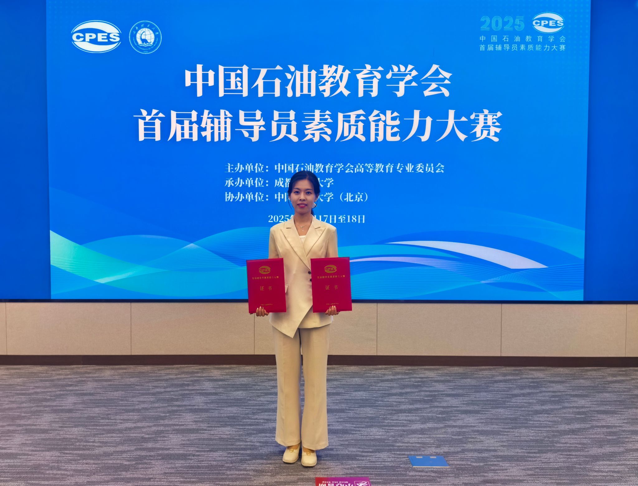 10月17日至18日,中国石油教育学会首届辅导员素质能力大赛现场决赛在成都理工大学举办。经过激烈的角逐,我校化学工程学院辅导员赵欣颖荣获一等奖,并获得“最佳学情分析奖”,智能制造与控制工程学院辅导员邢丹荣获二等奖。