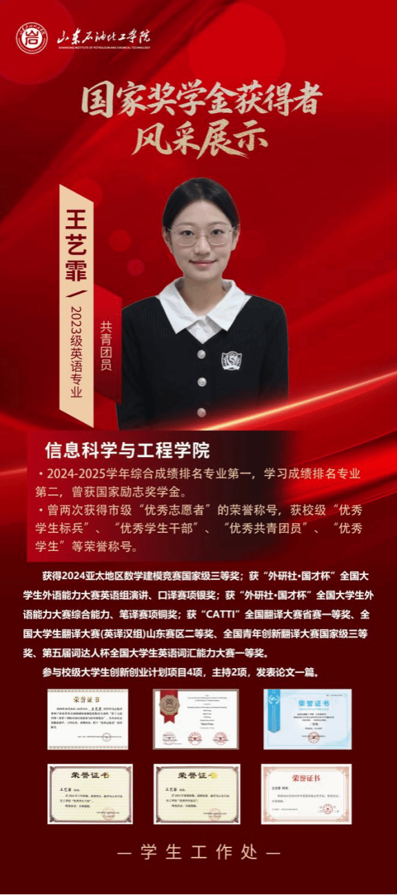在我校优良学风的滋养下,一批优秀学子凭借坚守学术初心的执着和争当先进、赶超先进的精神,在求知的道路上勇攀高峰。他们,是2025年度国家奖学金获得者。